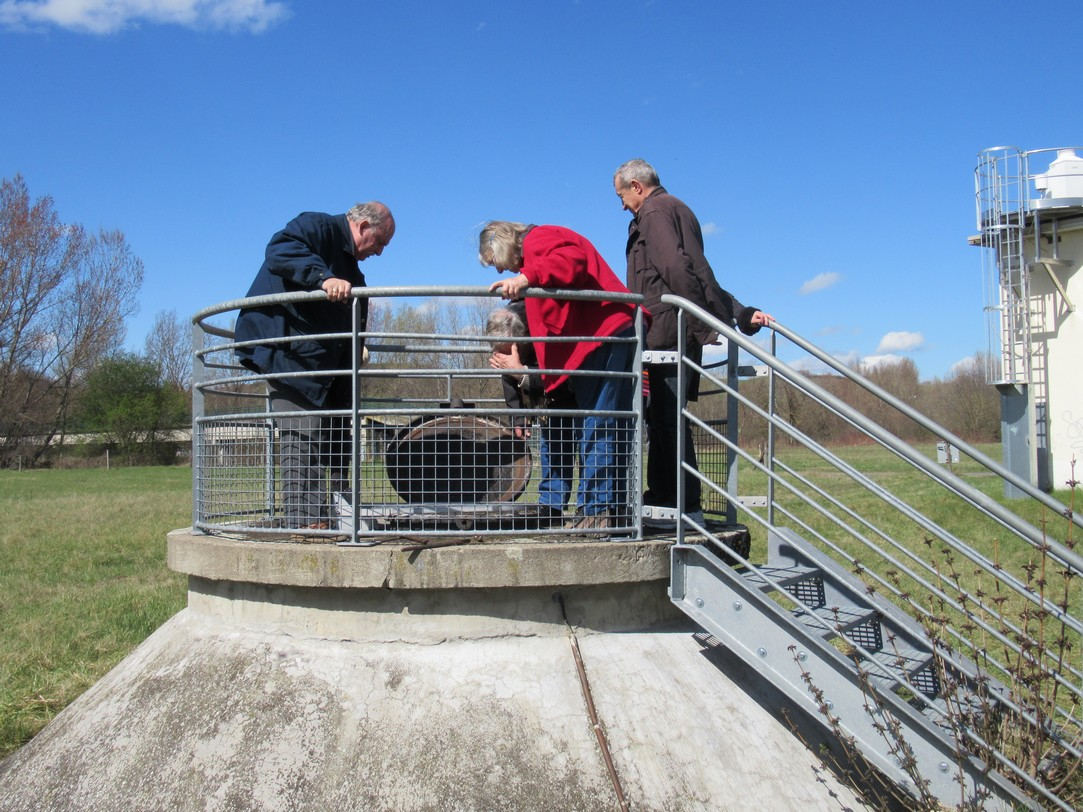 La visite des lieux qui permettent d’alimenter l’agglomération de Clermont en eau potable intéresse beaucoup d’entre nous : nous avons dû nous répartir en trois groupes les mardi 27, jeudi 29 et vendredi 30 mars à Cournon, tout près de l’Allier. Elle se déroule en trois temps : un premier sur le terrain des captages de l’eau de la nappe alluviale de l’Allier, un second dans l’usine de traitement, et le troisième au réservoir de Bâne.