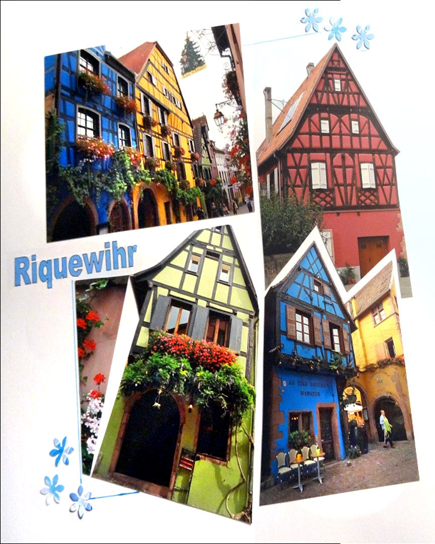 La découpe européenne ou à la française (voir mes modèles) est beaucoup plus basée sur l’intérêt des photos avec juste un petit décor qui accompagne. Vous pouvez coller vos photos tout simplement ou faire un style « carnet de «voyages » en décrivant votre voyage, vos vacances avec les textes adéquats.