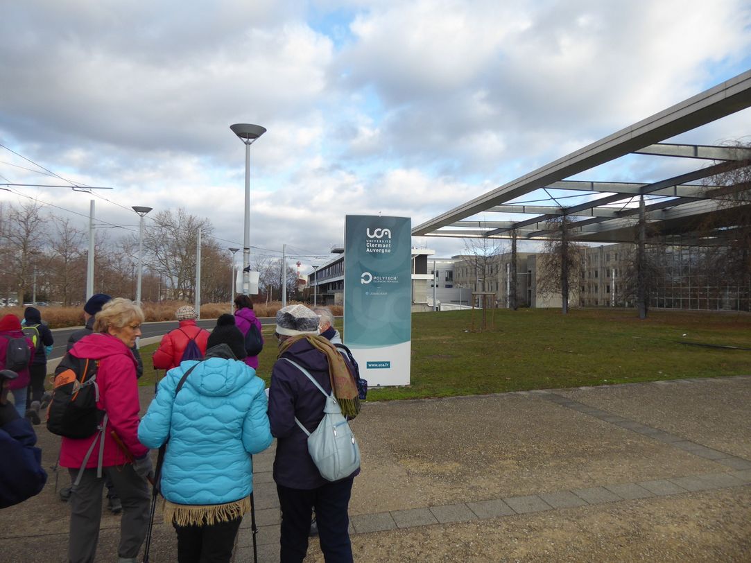 Madame Ducher, Maitre de Conférences en Biologie (en retraite) dans le département Génie Biologique de Polytech Clermont sur ce campus universitaire consacré aux sciences dures et aux sciences appliquées, nous permet de nous repérer entre les bâtiments de chaque discipline. Il faut bien connaître les lieux pour s’y retrouver ! Le plateau est le prolongement de la coulée de lave du puy de Gravenoire sur laquelle se trouvent Beaumont et Aubière, et avant la construction de tous ces édifices, il était recouvert de vignes… et de lapins !